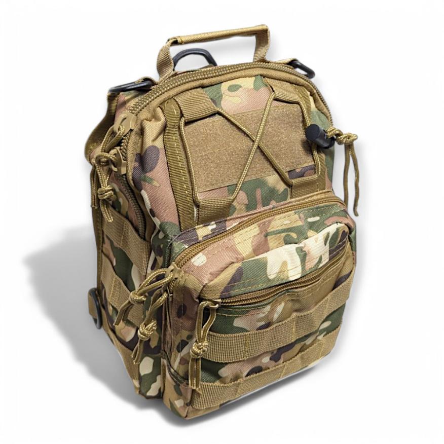 O geantă de umăr simplă de la producătorul Areswer. Geanta este echipată cu accesorii tactice, cum ar fi inele D pentru agățare sau sistemul Molle/Pals pe partea frontală și laterală a buzunarului. Pe partea frontală se află un panou velcro, care servește pentru atașarea patch-urilor velcro.