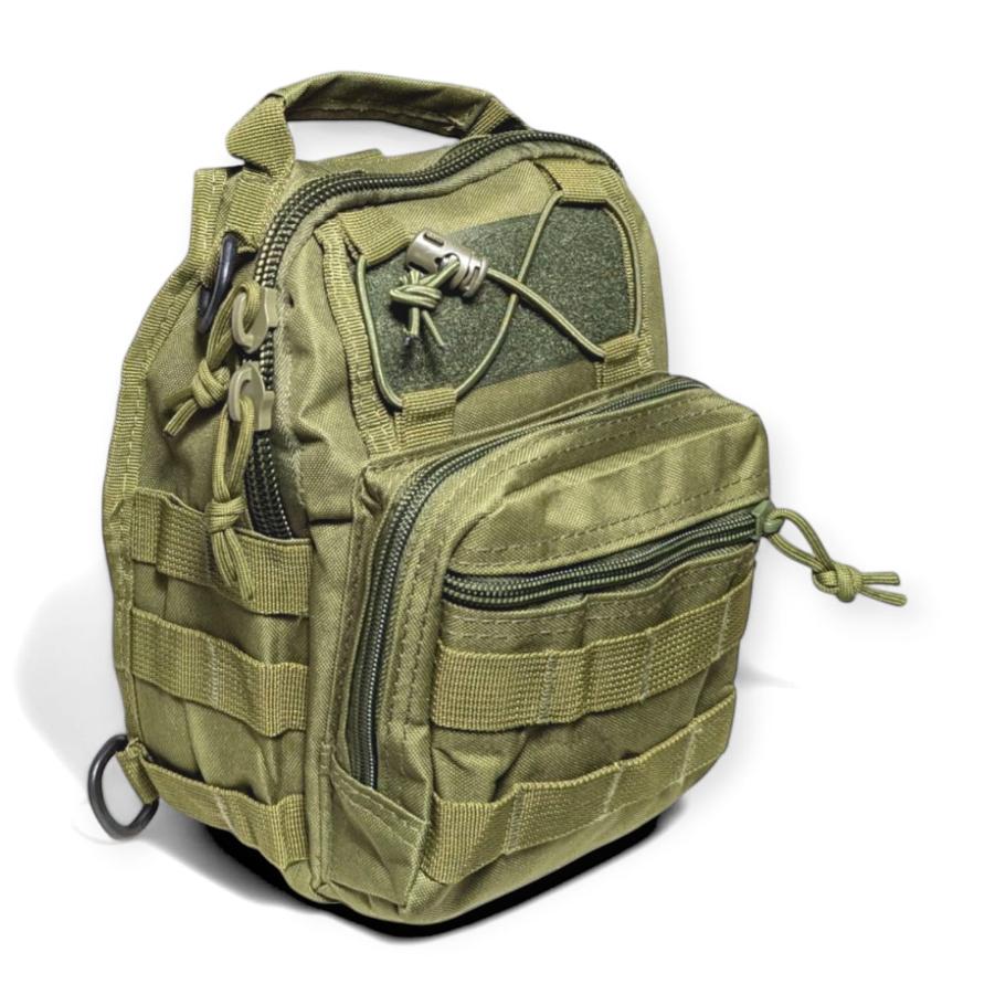 Geantă simplă de umăr de la producătorul Areswer. Geanta este echipată cu accesorii tactice, cum ar fi inele D pentru agățare sau sistemul Molle/Pals pe partea frontală și laterală a buzunarului. Pe partea frontală se află un panou velcro, care servește pentru atașarea patch-urilor velcro.