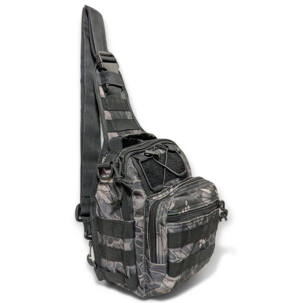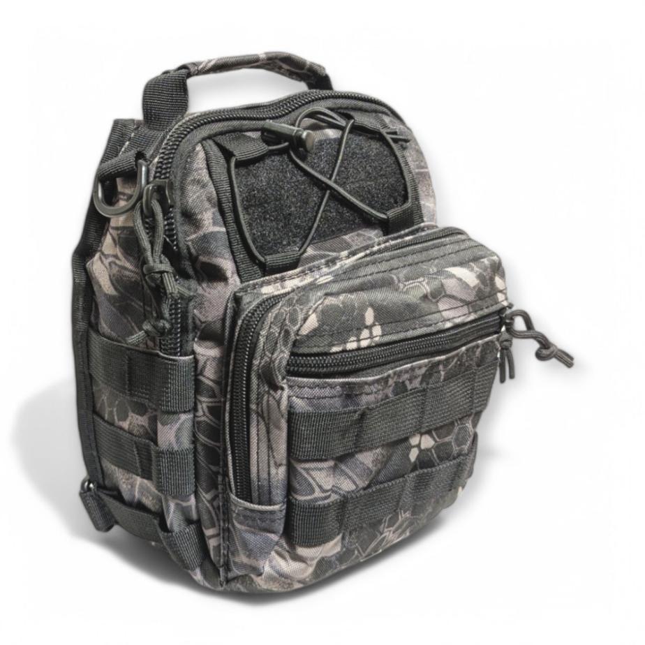 O geantă de umăr simplă de la producătorul Areswer. Geanta este echipată cu accesorii tactice, cum ar fi inele D pentru agățare sau sistemul Molle/Pals pe partea frontală și laterală a buzunarului. Pe partea frontală se află un panou velcro, care servește pentru atașarea patch-urilor velcro.