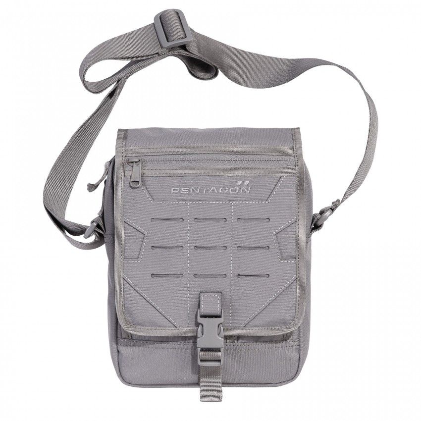 Geantă multifuncțională de umăr de la compania Pentagon. Geanta poate, datorită compartimentării bogate, să servească și ca bază pentru echipamentul EDC. Pe partea din față se află o clapetă cu cataramă din plastic DuraFlex®, care include sistemul Molle și un compartiment închis cu fermoar clasic, de calitate.