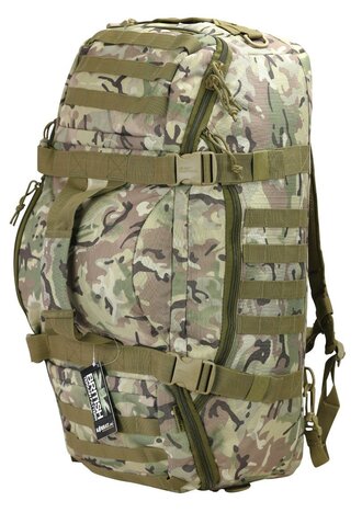 Geantă și rucsac, 2-în-1. Dispune de mâner pentru transportul în mână, bretele pentru purtare ca rucsac și curea pentru umăr. Pe laterale și în partea superioară este prevăzută cu sistem MOLLE, pentru atașarea unor buzunare suplimentare.