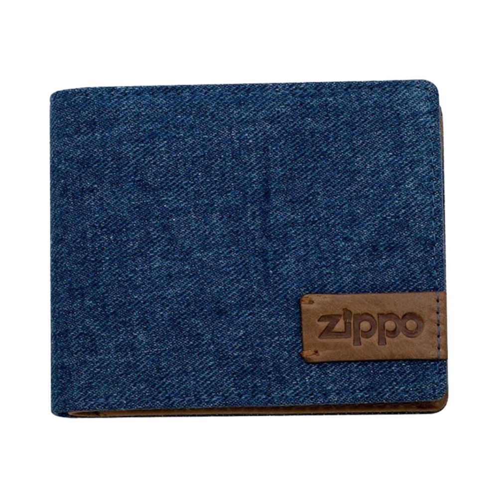 Kvalitná peňaženka od výrobcu ZIPPO s celokoženým vnútrom v hnedom odtieni v kombinácii s jeans materiálom.