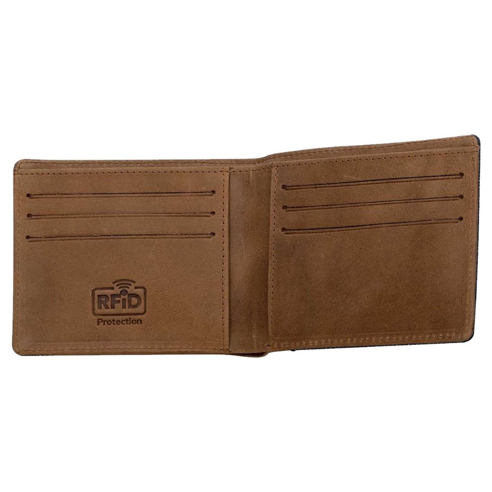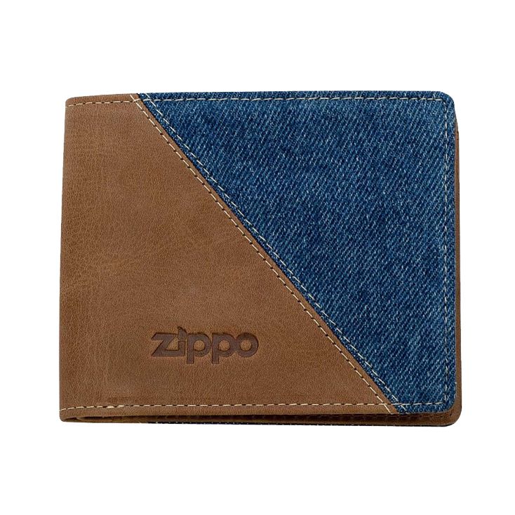 Portofel de calitate din piele de la producătorul ZIPPO, într-o nuanță maro combinată cu material jeans. Interiorul este complet din piele.