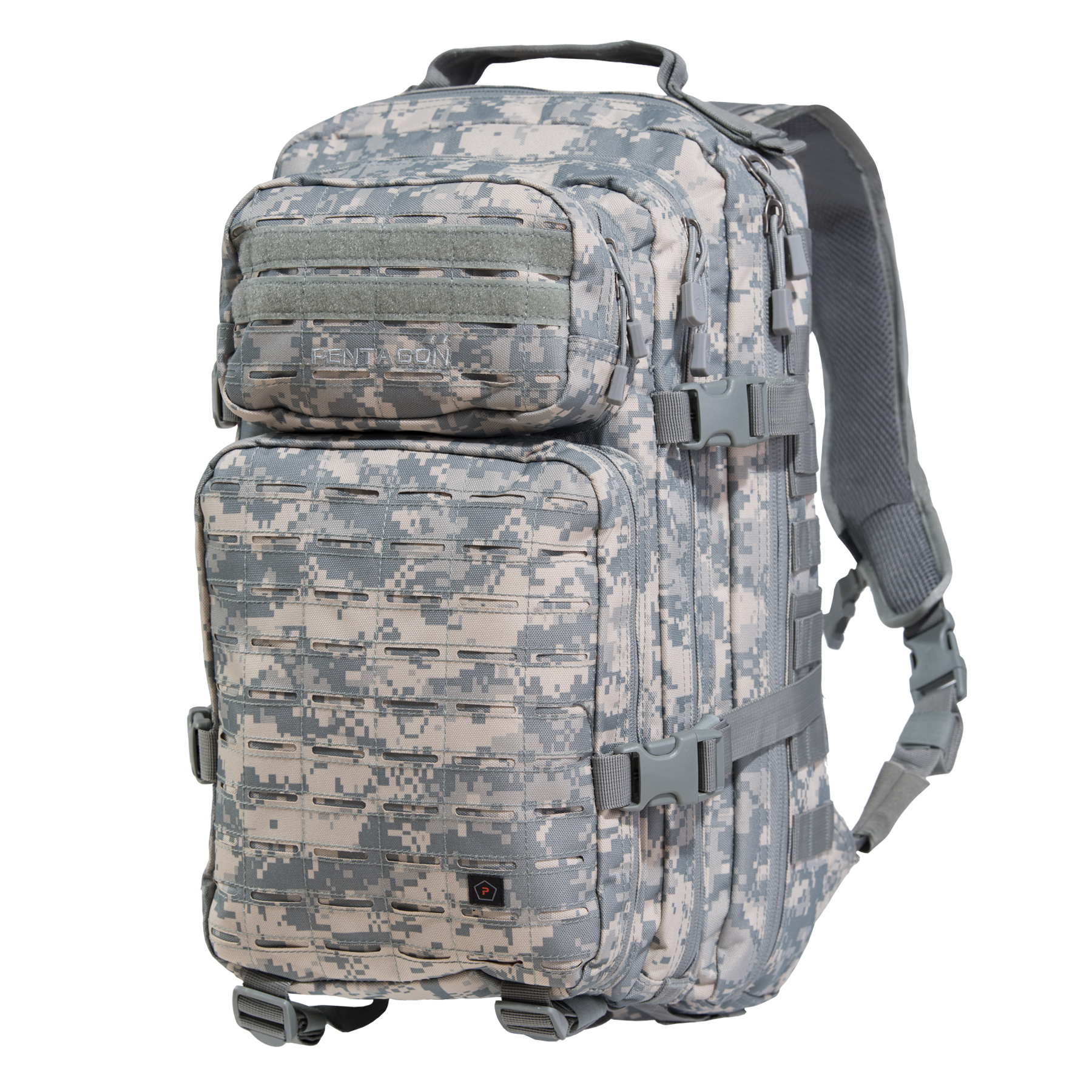 Ruksak typu Assault od výrobcu Pentagon. Kvalitné materiálové aj strihové prevedenie. Ruksak obsahuje priestor pre hydrovak, MOLLE systém je riešený systémom laser cut (vyrezávaný laserom), plastové spony sú značkové, od popredného výrobcu DuraFlex®.