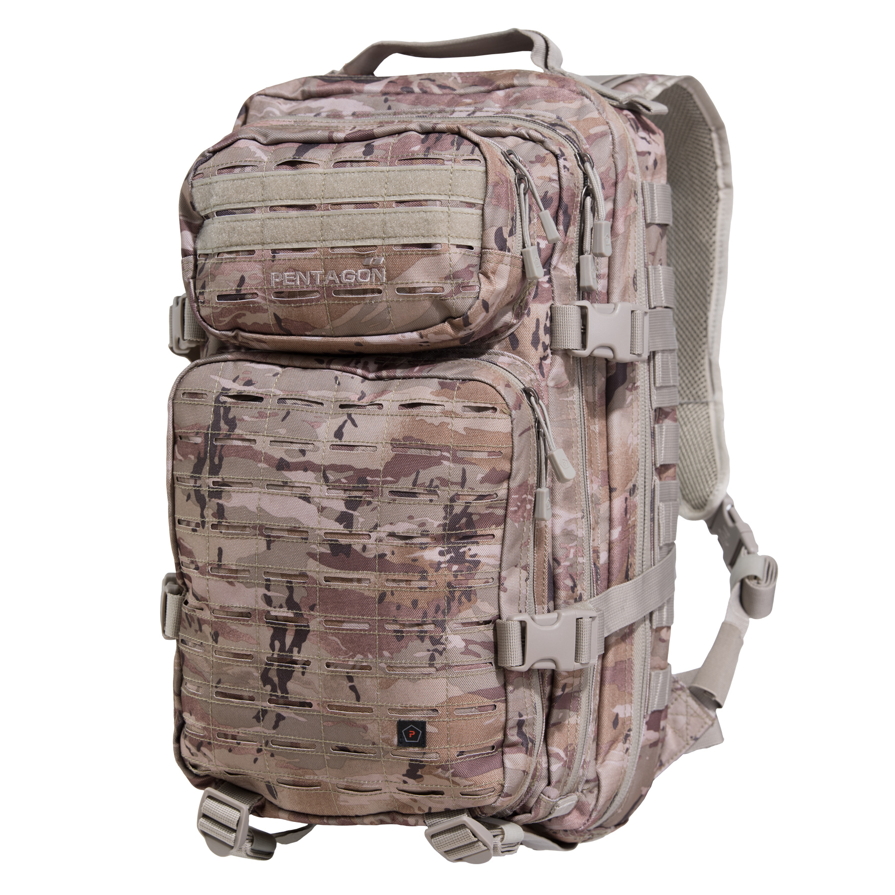 Ruksak typu Assault od výrobcu Pentagon. Kvalitné materiálové aj strihové prevedenie. Ruksak obsahuje priestor pre hydrovak, MOLLE systém je riešený systémom laser cut (vyrezávaný laserom), plastové spony sú značkové, od popredného výrobcu DuraFlex®.