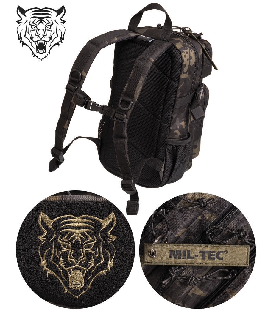 Skladá sa zo 4 priehradok - 2 sú väčšie a 2 menšie na prednej časti. Prvá väčšia priehradka sa otvára pomocou dvojcestného zipsu. Z prednej časti je velcro panel pre prípadné prilepenie nášiviek a taktiež MOLLE systém na zavesenie doplňujúceho príslušenstva. Súčasťou ruksaku je aj plastová karabínka.