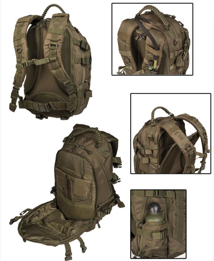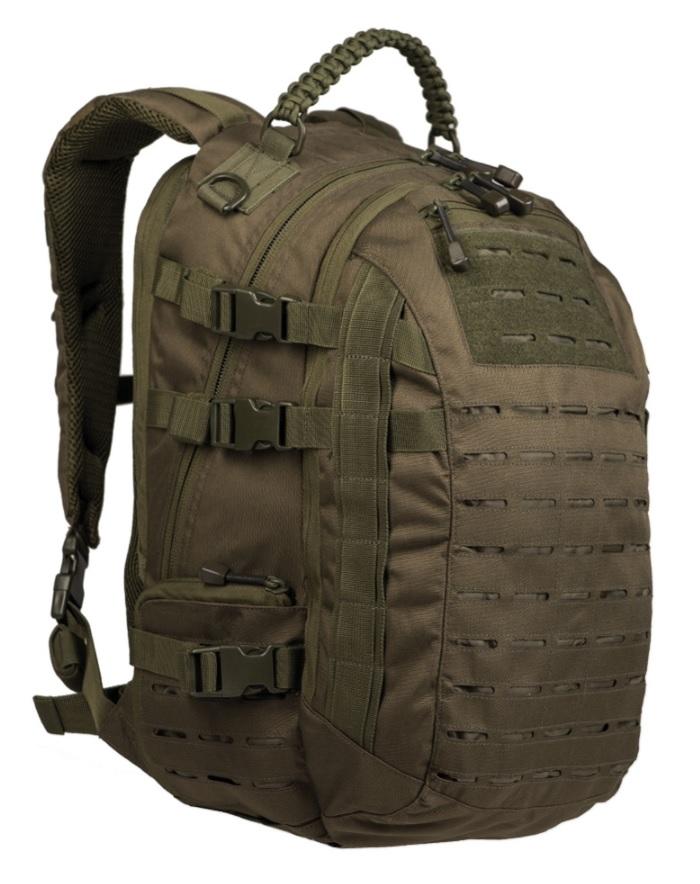 25l kompaktný model ruksaku z dielne nemeckej spoločnosti Mil-tec. Ruksak má prepracovaný dizajn a moderný laser-cut Molle systém. Hrany Molle systému sú vypalované laserom a hrany sú presné a scelené. Z vrchnej časti je namiestno klasického pútka na prenášanie zapletené paracordové pútko, ktoré je možné rozpliesť a v prípade potreby využiť na rôzne účely.