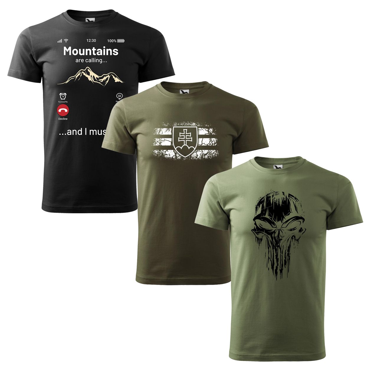 Set promoțional 3x tricouri - simbol SVK + Mountains are calling + craniu
