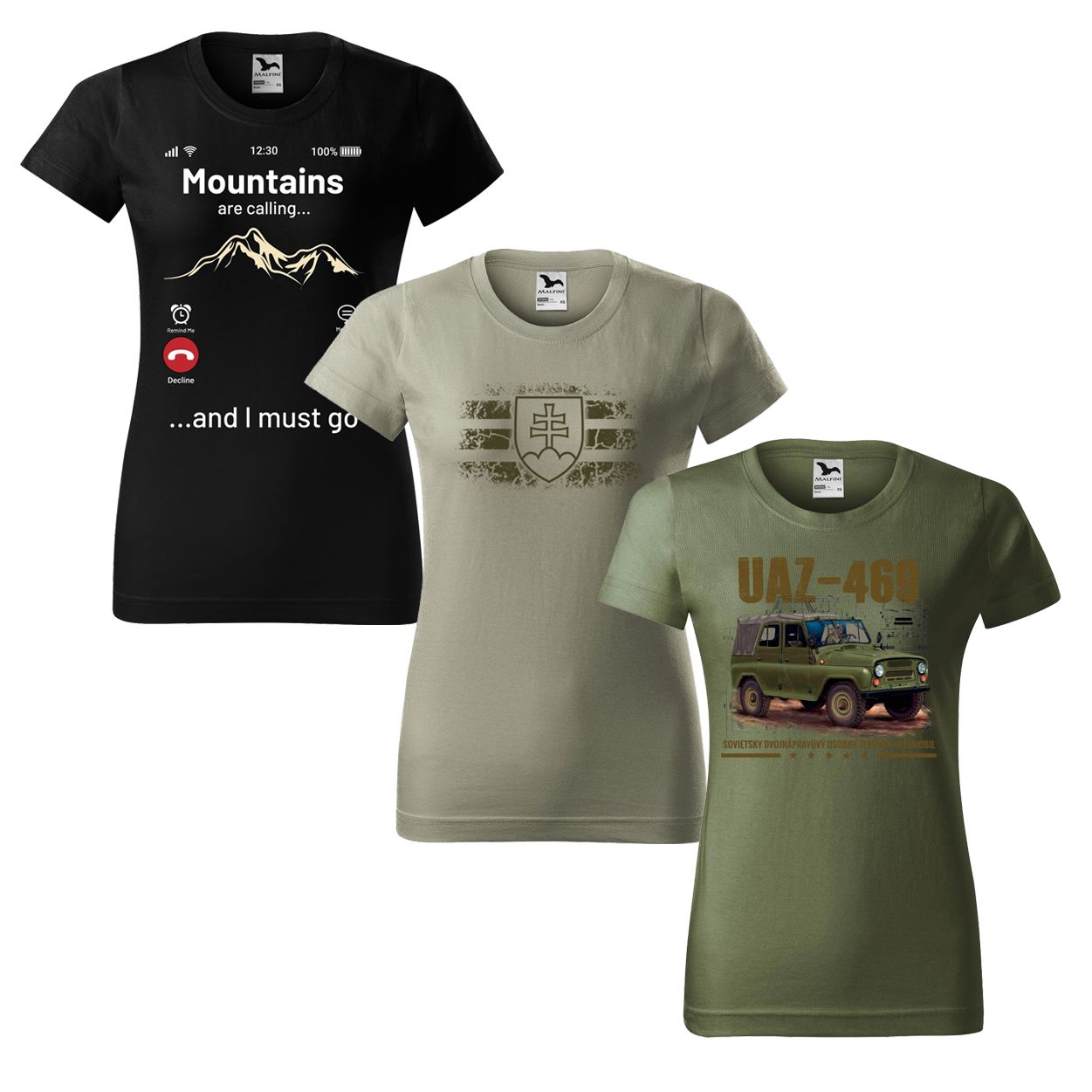 Tricou damă set promoțional 3x - simbol Slovacia + Chemarea munților + UAZ